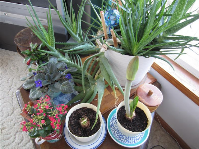 Marcia, You have some truly nice houseplants. The bright red amaryllis is a stunner, and so nice to have that spot of bright color when outside it's all white (or brown).