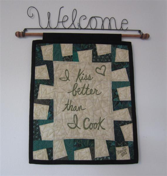 That is Cute I love the kissing quilt. Though I think I Cook better then I kiss.