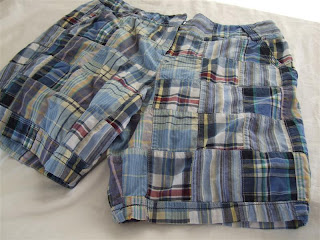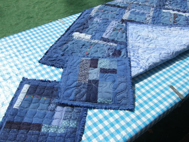 I transformed (upcycled) these blue patchwork shorts into a quilt.